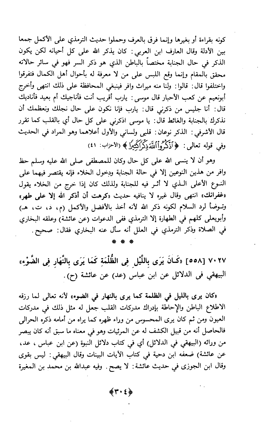 558 - (كَانَ يرى بِاللَّيْلِ فِي الظلمَة كَمَا يرى بِالنَّهَارِ فِي الضَّوْء) الْبَيْهَقِيّ فِي الدَّلَائِل عَن ابْن عَبَّاس عَن عَن عَائِشَة ح