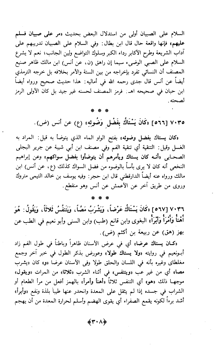 السَّلَام على الصّبيان أولى من اسْتِدْلَال الْبَعْض بِحَدِيث مر على صبيان فَسلم عَلَيْهِم فَإِنَّهَا وَاقعَة حَال قَالَ ابْن بطال وَفِي السَّلَام على الصّبيان تدريبهم على آدَاب الشَّرِيعَة وَطرح الأكابر رِدَاء الْكبر وسلوك التَّوَاضُع ولين الْجَانِب نعم لَا يشرع السَّلَام على الصَّبِي الوضيء سِيمَا إِن راهق ن عَن أنس ابْن مَالك ظَاهر صَنِيع المُصَنّف أَن النَّسَائِيّ تفرد بِإِخْرَاجِهِ من بَين السِّتَّة وَالْأَمر بِخِلَافِهِ بل خرجه التِّرْمِذِيّ أَيْضا عَن أنس قَالَ جدي رَحمَه الله فِي أَمَالِيهِ هَذَا // حَدِيث صَحِيح // وَرَوَاهُ أَيْضا ابْن حبَان فِي صَحِيحه اه فرمز المُصَنّف لحسنه غير جيد بل كَانَ الأولى الرَّمْز لصِحَّته