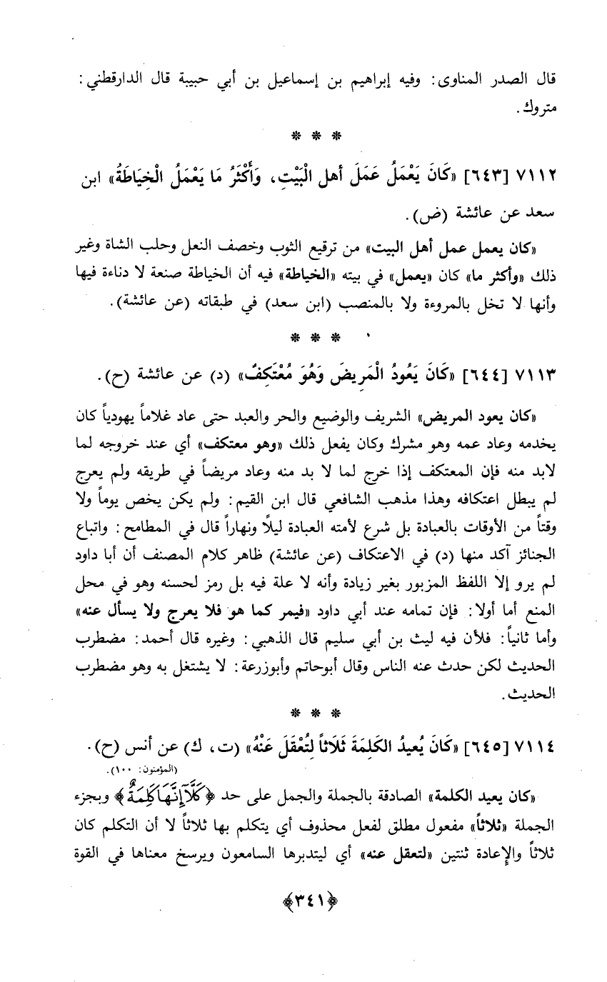 643 - (كَانَ يعْمل عمل أهل الْبَيْت وَأكْثر مَا يعْمل الْخياطَة) ابْن سعد عَن عَائِشَة ض