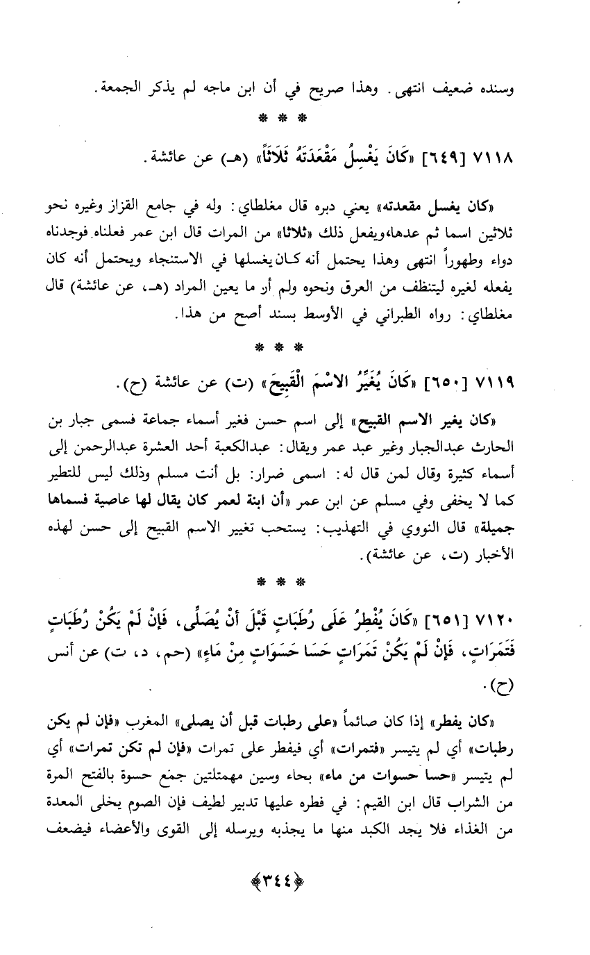 649 - (كَانَ يغسل مقعدته ثَلَاثًا) هـ عَن عَائِشَة