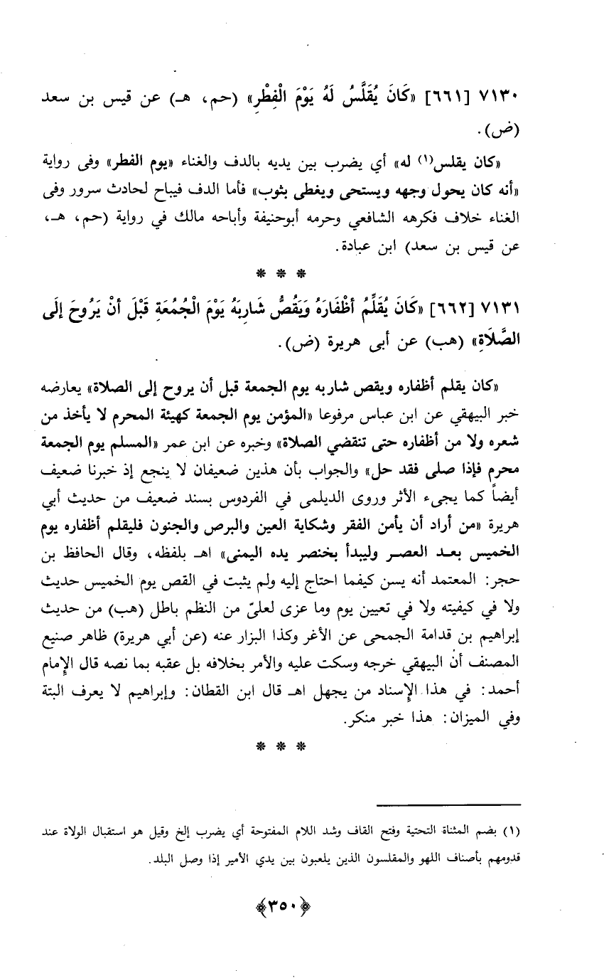 66 - (كَانَ يقلم أَظْفَاره ويقص شَاربه يَوْم الْجُمُعَة قبل أَن يروح إِلَى الصَّلَاة) هَب عَن أبي هُرَيْرَة ض