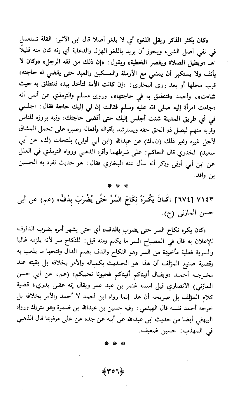 674 - (كَانَ يكره نِكَاح السِّرّ حَتَّى يضْرب بدف) عَم عَن أبي حسن الْمَازِني ح