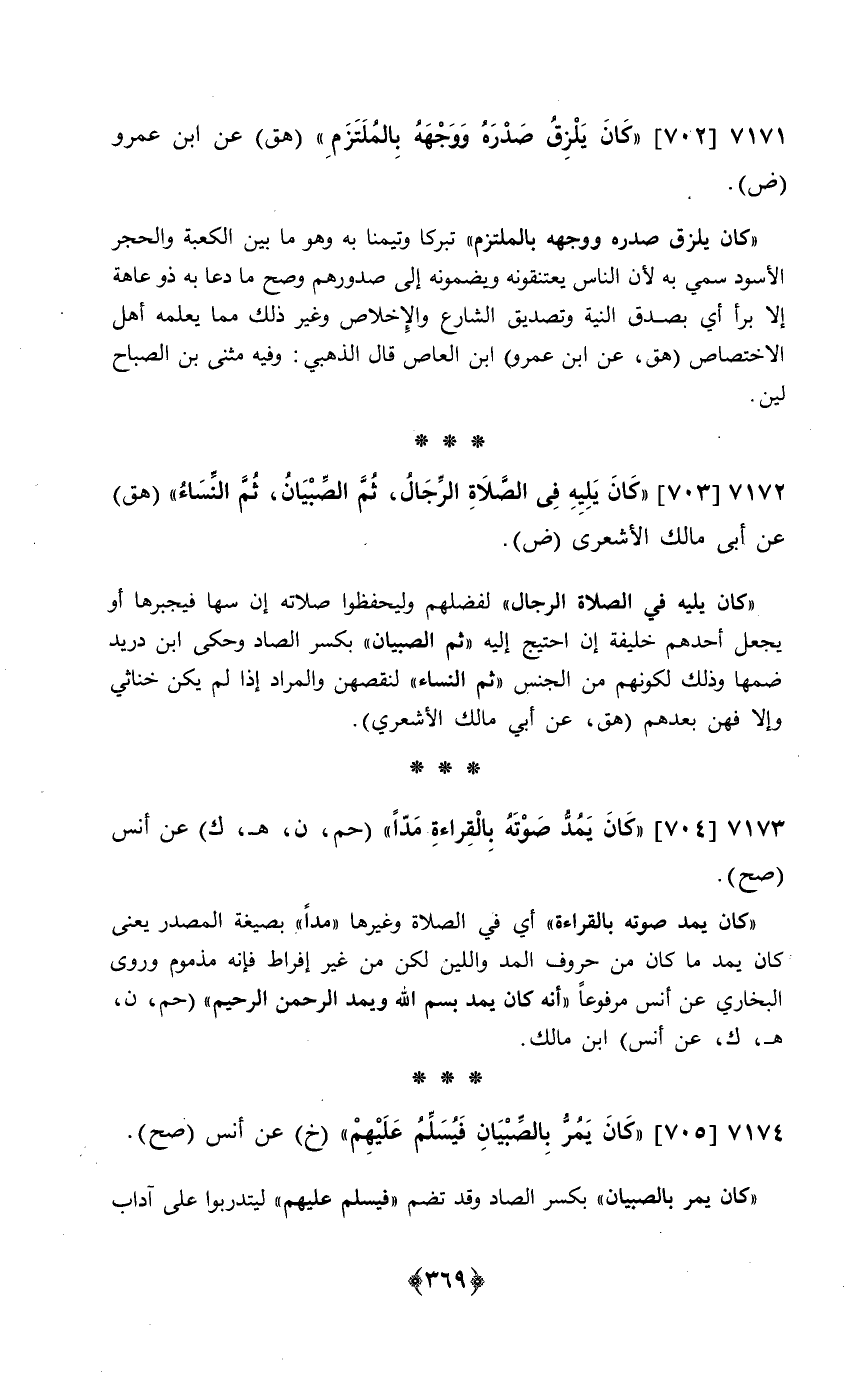 70 - (كَانَ يلزق صَدره وَوَجهه بالملتزم) هق عَن ابْن عَمْرو ض