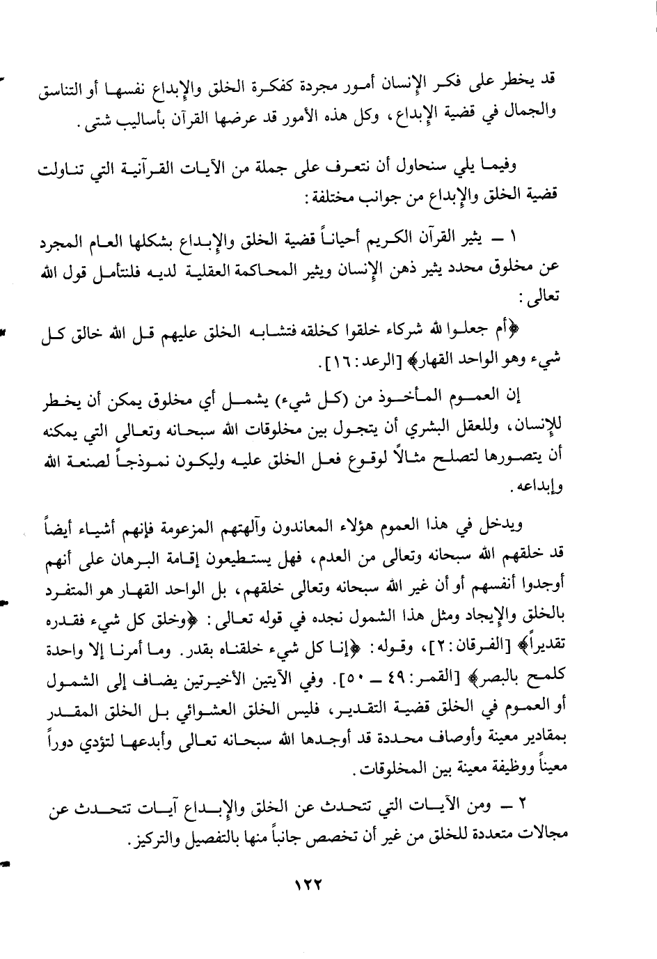 {وَمَنْ يَقُلْ مِنْهُمْ إِنِّي إِلَهٌ مِنْ دُونِهِ فَذَلِكَ نَجْزِيهِ جَهَنَّمَ كَذَلِكَ نَجْزِي الظَّالِمِينَ، أَوَلَمْ يَرَ الَّذِينَ كَفَرُوا أَنَّ السَّمَاوَاتِ وَالْأَرْضَ كَانَتَا رَتْقًا فَفَتَقْنَاهُمَا وَجَعَلْنَا مِنَ الْمَاءِ كُلَّ شَيْءٍ حَيٍّ أَفَلا يُؤْمِنُونَ، وَجَعَلْنَا فِي الْأَرْضِ رَوَاسِيَ أَنْ تَمِيدَ بِهِمْ وَجَعَلْنَا فِيهَا فِجَاجًا سُبُلًا لَعَلَّهُمْ يَهْتَدُونَ، وَجَعَلْنَا السَّمَاءَ سَقْفًا مَحْفُوظًا وَهُمْ عَنْ آيَاتِهَا مُعْرِضُونَ، وَهُوَ الَّذِي خَلَقَ اللَّيْلَ وَالنَّهَارَ وَالشَّمْسَ وَالْقَمَرَ كُلٌّ فِي فَلَكٍ يَسْبَحُونَ} [الأنبياء: 29-33] . إنها جولة في أقطار السماوات والأرض ممتدة عريقة في القدم، ونظرة ثاقبة في أصل السماوات والأرض يوم كانتا رتقًا ملتصقة متحدة مشكلة من مادة واحدة، ففتقها خالقها سبحانه وتعالى، إن مداركنا لا تصل بصورة قاطعة إلى هذا الرتق، وكيفية الفتق وإن كانت العلوم الفلكية والطبيعية بدأت تخطر خطوات بدائية ولكنها حثيثة للتعرف على أصل الكون بدراسة ظواهر بعض الكواكب، وبعد أن عرفوا أن مادة القمر من نفس مادة الأرض، وقد علموا في السابق ما في النيازك ومخلفات الشهب التي تسقط على الأرض من الفضاء، وأنها من معادن مشابهة لأنواع المعادن في الأرض. إن هذه الحقيقة الهائلة التي نقرءوها في هذه الآيات هي مجال أبحاث كبار المختصين ولا تقل الحقيقة الثانية في