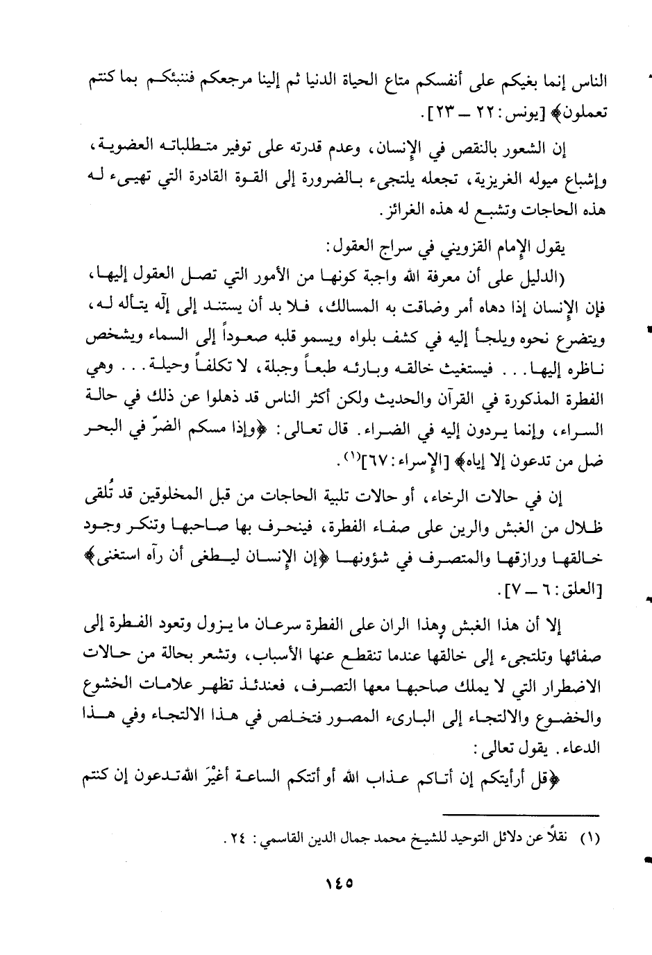 1 دلائل التوحيد للشيخ محمد جمال الدين القاسمي: 55 باختصار.
