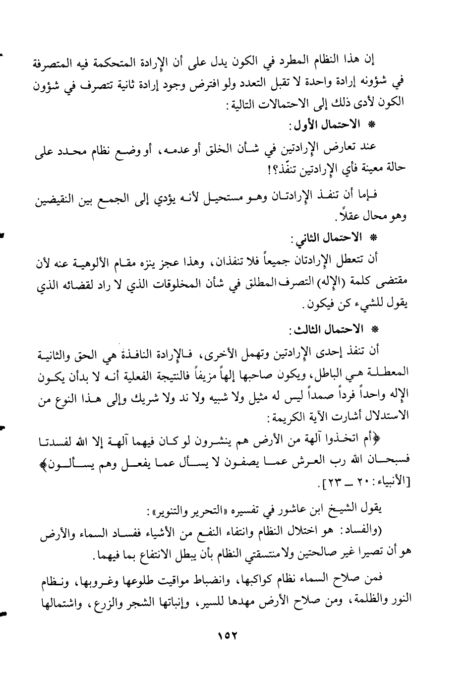 أن الأول: يستلزم اختلال أحوال المخلوقات السماوية والأرضية وهو ما تبطله المشاهدة.