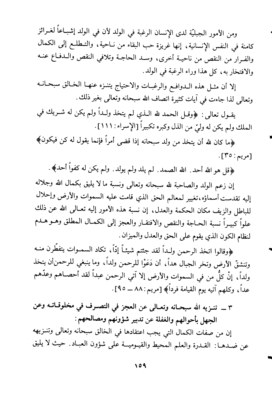 وإثبات الكمالات المطلقة لله سبحانه وتعالى وتنزيهه عن صفات النقص، متضمنة في أسمائه التسعة والتسعين لذا من قرأها متدبرًا لمضامينها مؤمنًا بما أثبت الله سبحانه وتعالى لنفسه فيها من صفات الكمال، منزهًا لله جل جلاله عن صفات النقص من خلالها كان ممن استحق الجنة، فقد جاء في الحديث: عن أبي هريرة رضي الله عنه عن النبي صلى الله عليه وسلم: "لله تسعة وتسعون اسمًا من حفظها دخل الجنة، وإن الله وتر يحب الوتر"، وفي رواية عند مسلم: "من أحصاها".