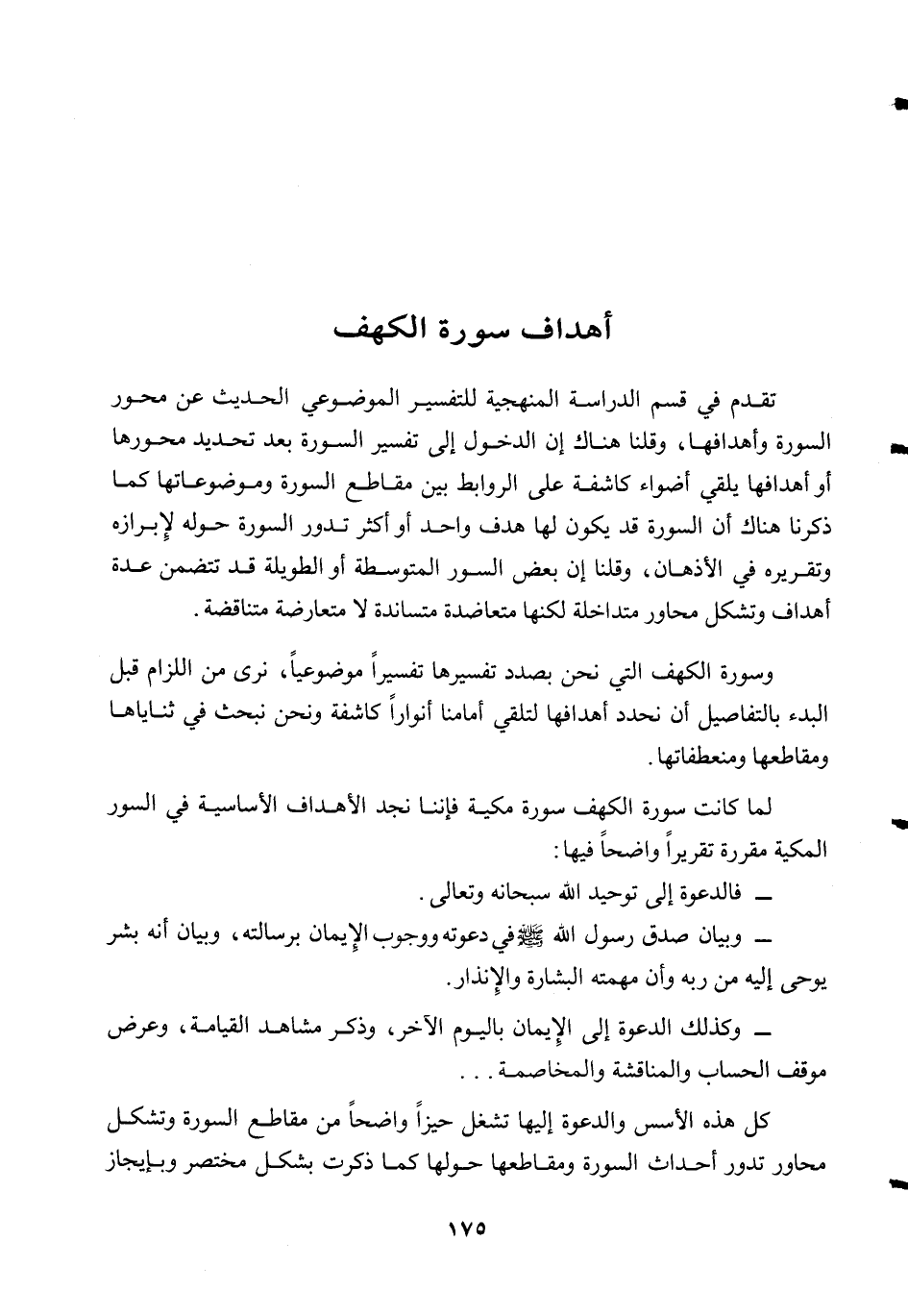 ورواية الإمام أحمد تنص على اكتساب المؤمن نورًا يضيء بين يديه عندما يقرأ سورة الكهف، ولو حاولنا البحث عن سر هذه العصمة وهذا النور الذي يكسبه المؤمن الحافظ أو القارئ لسورة الكهف، لوجدناه يكمن في هذه المبادئ وهذه الحقائق التي اختزلتها افتتاحية السورة وأكدتها الخاتمة وفصلتها المقاطع، فمن وعاها حق الوعي والتزم بها اعتقادًا ومنهج حياة فقد أمسك بالميزان الحق والنور المضيء الذي يفرق به بين الصحيح والسقيم وبالتالي يكون بمنأى عن زيف المخادعين المموهين ولا تؤثر فيه فتنة.