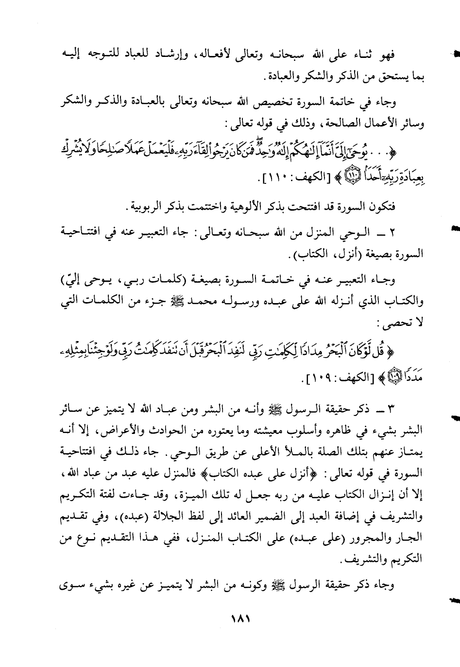 فقد ورد ذكر المنهج الصحيح من خلال الإشارة إلى كلمات الله سبحانه وتعالى والوحي بها إلى عبده ورسوله، ومضمون هذا الوحي: