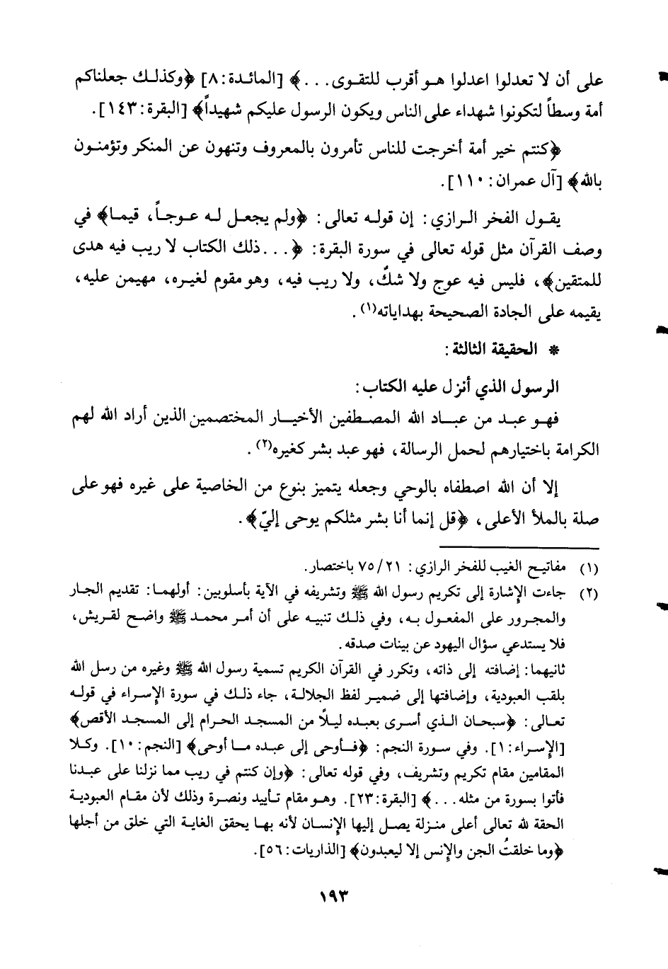 وفي آخر السورة: {قُلْ إِنَّمَا أَنَا بَشَرٌ مِثْلُكُمْ يُوحَى إِلَيَّ أَنَّمَا إِلَهُكُمْ إِلَهٌ وَاحِدٌ فَمَنْ كَانَ يَرْجُوا لِقَاءَ رَبِّهِ فَلْيَعْمَلْ عَمَلًا صَالِحًا وَلا يُشْرِكْ بِعِبَادَةِ رَبِّهِ أَحَدًا} .