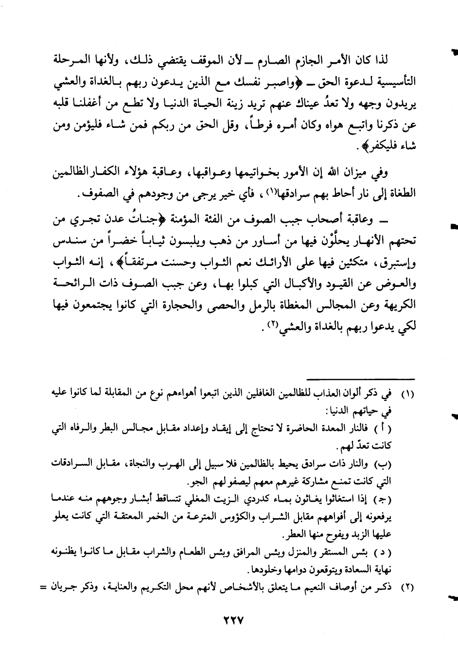 1 ذكر تفجير النهر خلال الجنتين متأخرًا عن ذكر إيتاء الجنتين الأكل، إشارة إلى أن خصوبة التربة ورطوبة الجو كانت كافية لإيتاء الجنتين النتاج، ووجود النهر عندئذ رصيد احتياطي عند تقلبات الأنواء، كما أن وجود النهر يزيد المنظر جمالًا.