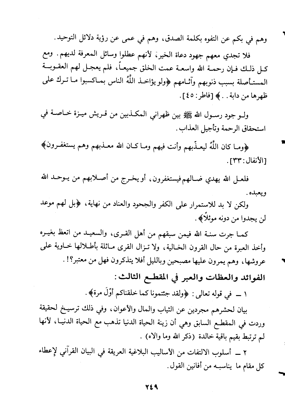 د- أخذ العظات والعبر من مصير الأقوام السابقين، والالتجاء إلى الله لتجنب ما حاق بهم.