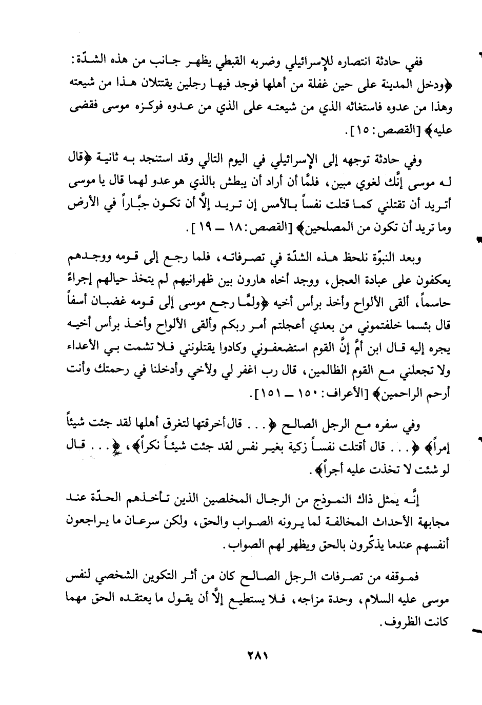 فلا بد من مبرر منطقي يستمسك به موسى عليه السلام ودافع شرعي يمنعه من السكوت على ما يشاهده أمامه.