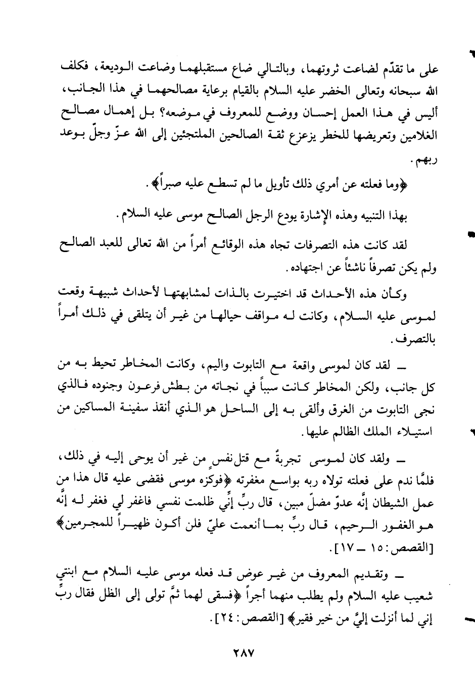 2- من كمال الحكمة الربانية وعظيم رحمة الله بعباده أن يستعمل نبيين كريمين مثل موسى والخضر عليهما السلام في حفظ مصالح الغلامين اليتيمين، ليلجأ عباده إليه ويتوكلوا عليه حق التوكل، فإن الله لا تضيع عنده الودائع، كما أن في ذلك حفظ مصالح الذرية بصلاح الآباء.