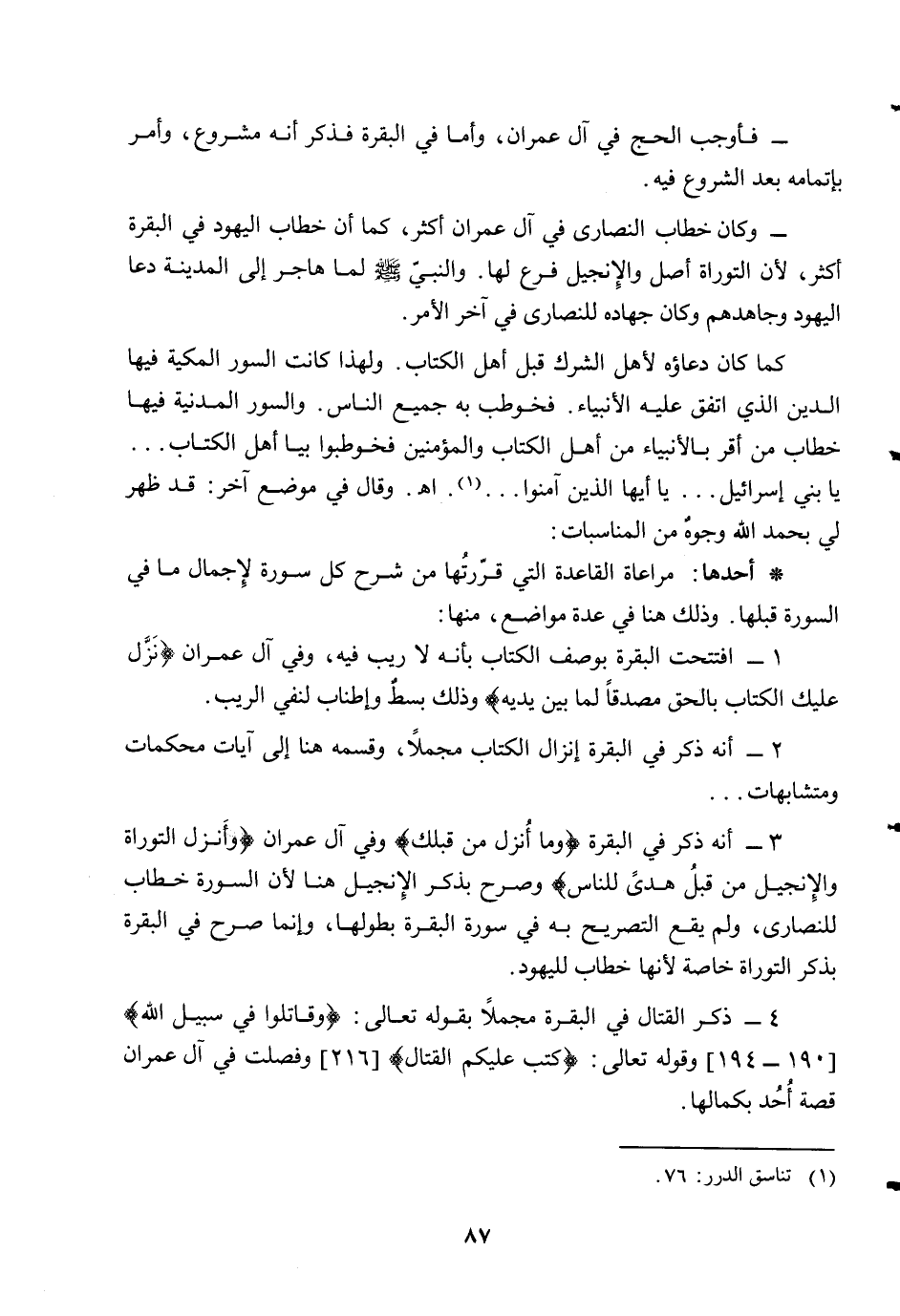 هذه جملة مما ذكره السيوطي في المناسبات والتلازم بين سورتي البقرة وآل عمران.