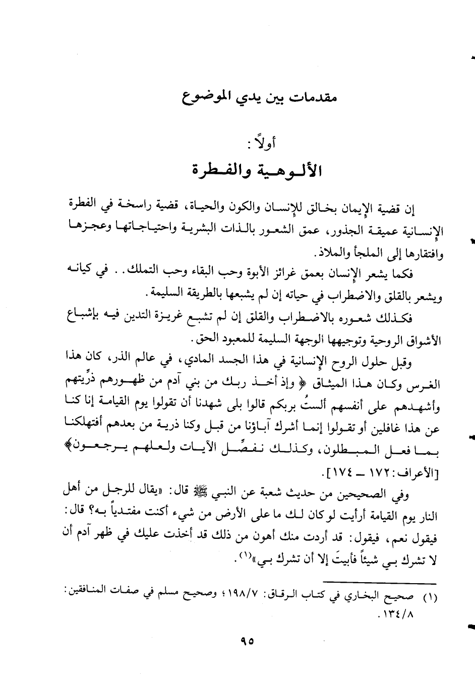 عن عبد الله بن مسعود قال: قال رسول الله صلى الله عليه وسلم: "لا تقتل نفس ظلمًا إلا كان علي ابن آدم الأول كفل من دمها لأنه كان أول من سن القتل" 1 رواه الإمام أحمد والجماعة سوى أبي داود. فالإيمان بالله سبحانه وتعالى، والتقرب إليه بصالح الأعمال ابتغاء مرضاته، وتقوى الله تعالى والالتزام بها مدعاة لقبول الأعمال، وخشية الله تعالى من سوء عاقبة الأعمال السيئة والآثام التي تؤدي بصاحبها إلى النار، والجزاء الأخروي للمحسنين وللمسيئين على ما اقترفوه في الحياة الدنيا. كل هذه أسس العقيدة الموحى بها في الشرائع السماوية جميعها، كانت واضحة المعالم في أذهان ابني آدم الأولين.