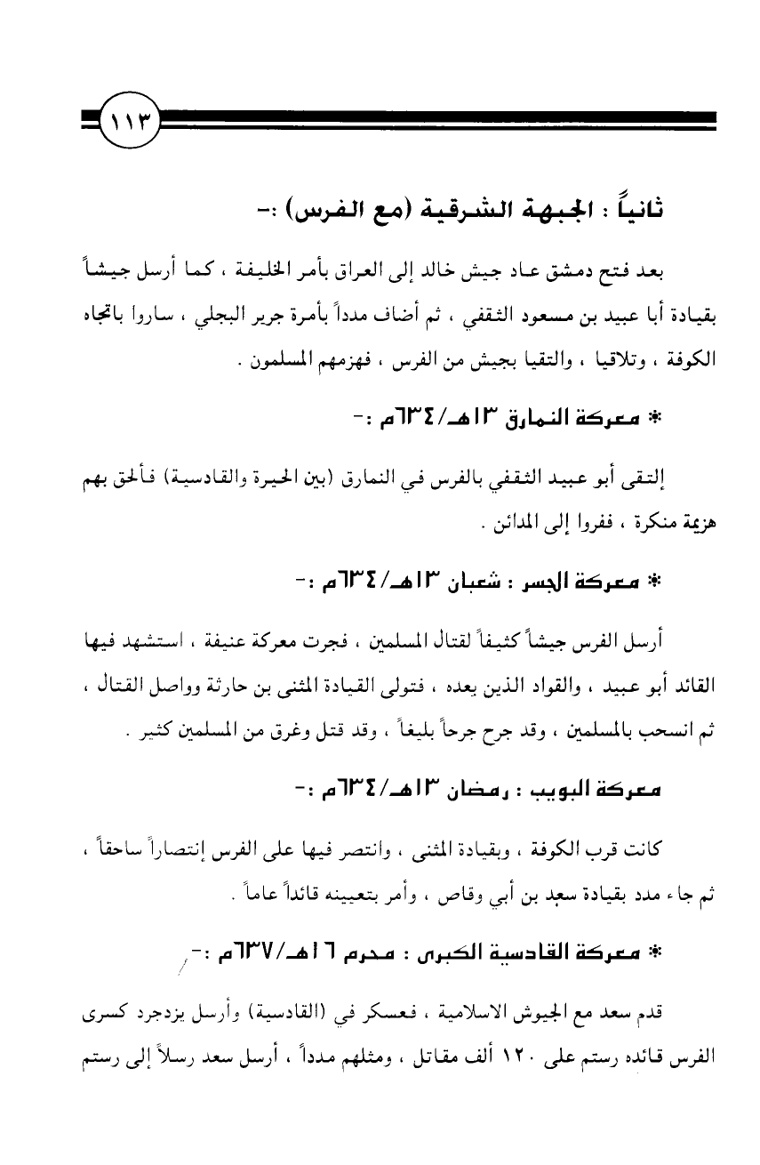 ثانيًا: الجبهة الشرقيهَ (مع الفرس):-