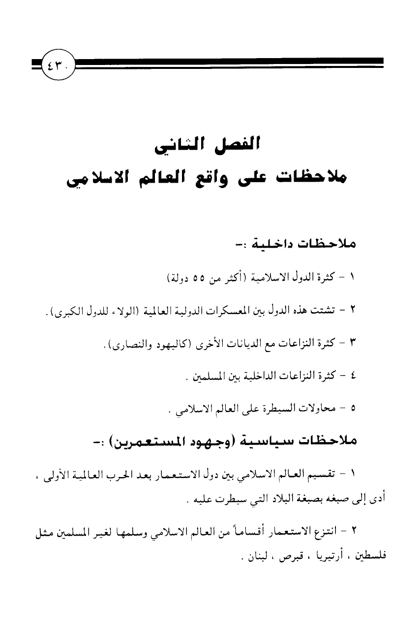 1 - كثرة الدول الإسلامية (أكثر من 55 دولة).
