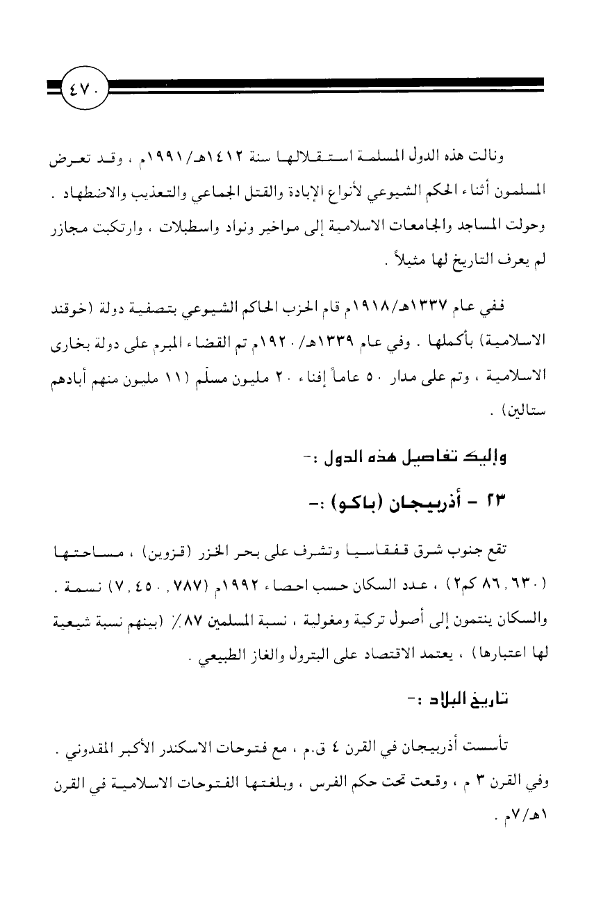 ونالت هذه الدول المسلمة استقلالها سنة 1412 هـ/1991 م، وقد تعرض المسلمون أثناء الحكم الشيوعي لأنواع الإبادة والقتل الجماعي والتعذيب والاضطهاد.