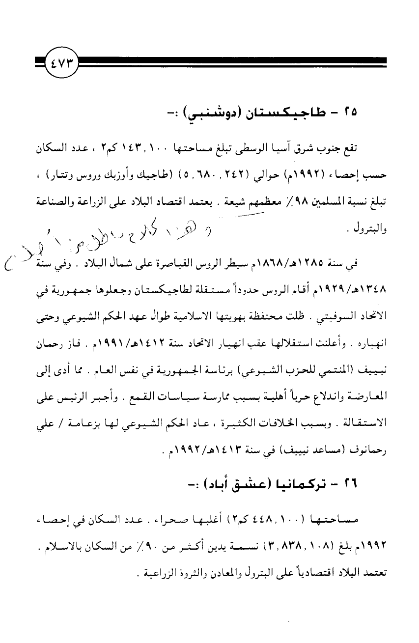 تقع جنوب شرق آسيا الوسطى تبلغ مساحتها 143.100 كم 2، عدد السكان حسب إحصاء (1992 م) حوالي (5.680.242) (طاجيك وأوزبك وروس وتتار)، تبلغ نسبة المسلمين 98% معظمهم شيعة (*). يعتمد اقتصاد البلاد على الزراعة والصناعة والبترول.