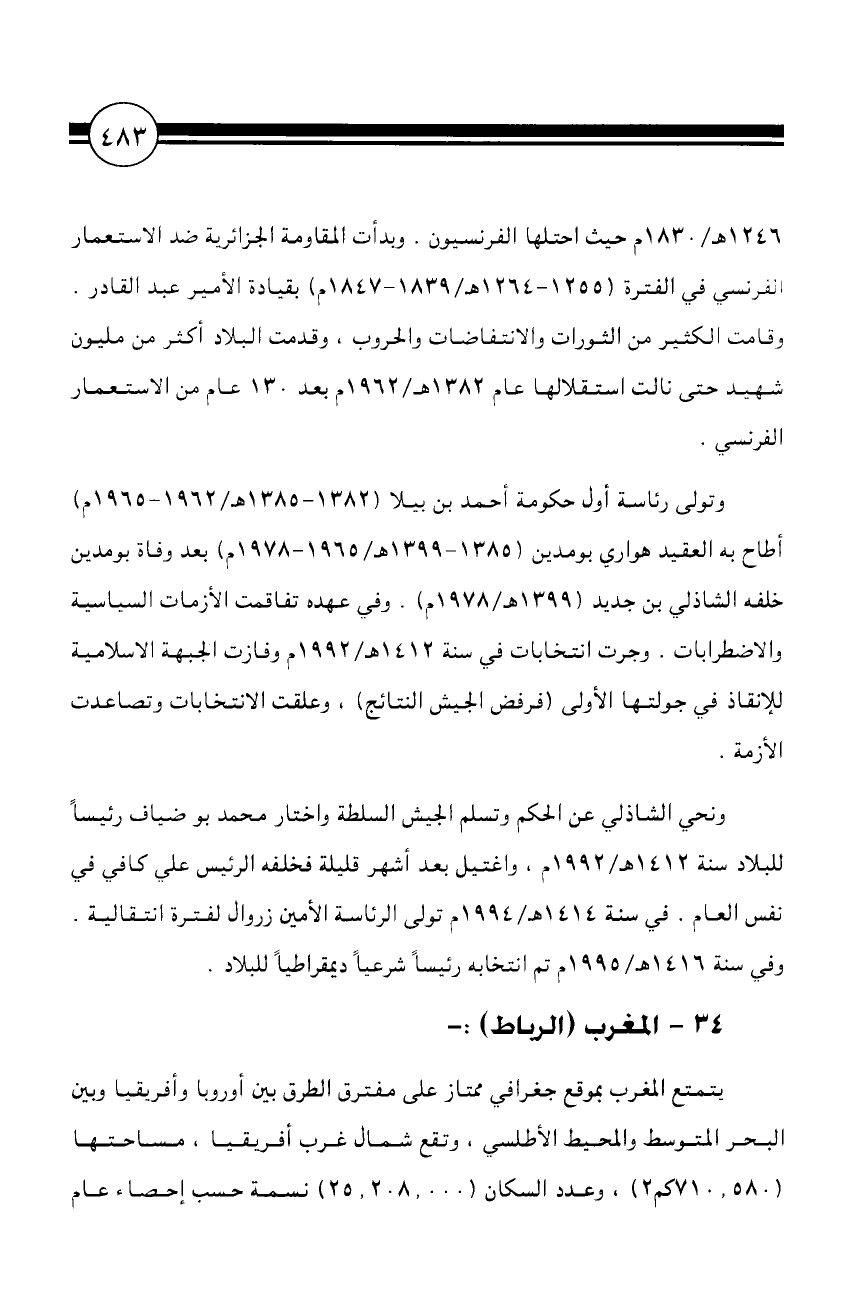 وقامت الكثير من الثورات والانتفاضات والحروب، وقدمت البلاد أكثر من مليون شهيد حتى نالت استقلالها عام 1382 هـ/1962 م بعد 130 عام من الاستعمار الفرنسي.