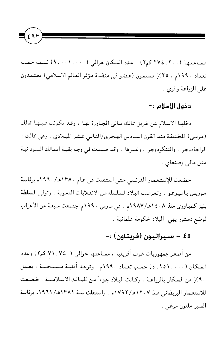 من أصغر جمهوريات غرب أفريقيا، مساحتها حوالي (71.740 كم 2) وعدد السكان (4.151.000) حسب تعداد 1990 م. وتوجد أقلية مسيحية، يعمل 90% من السكان بالزراعة، وكانت البلاد جزءًا من الممالك الإسلامية، خضعت للاستعمار البريطاني منذ 1207 هـ/1792 م، واستقلت سنة 1381هـ/1961 م برئاسة السير ملتون مرغي.