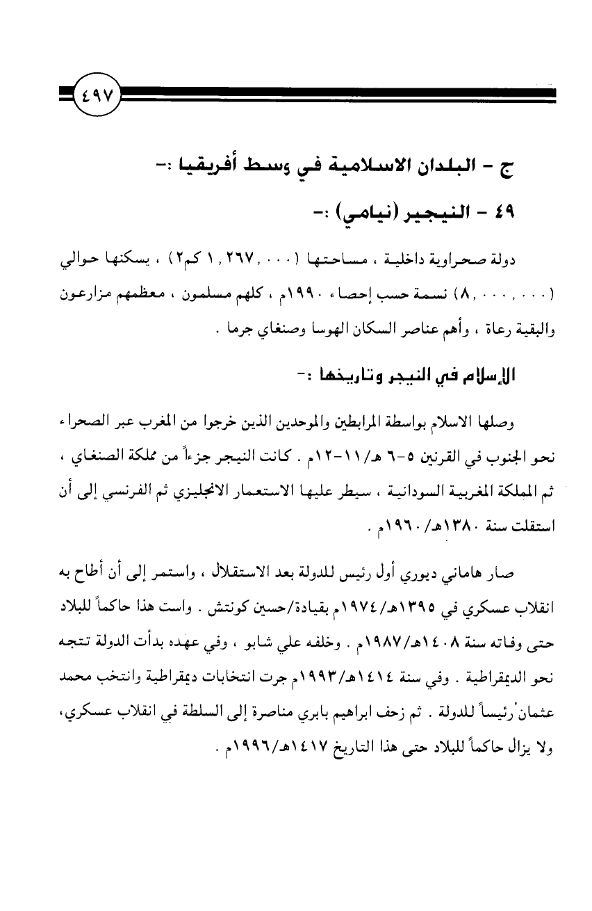 ج - البلدان الإسلامية في وسط أفريقيا:-