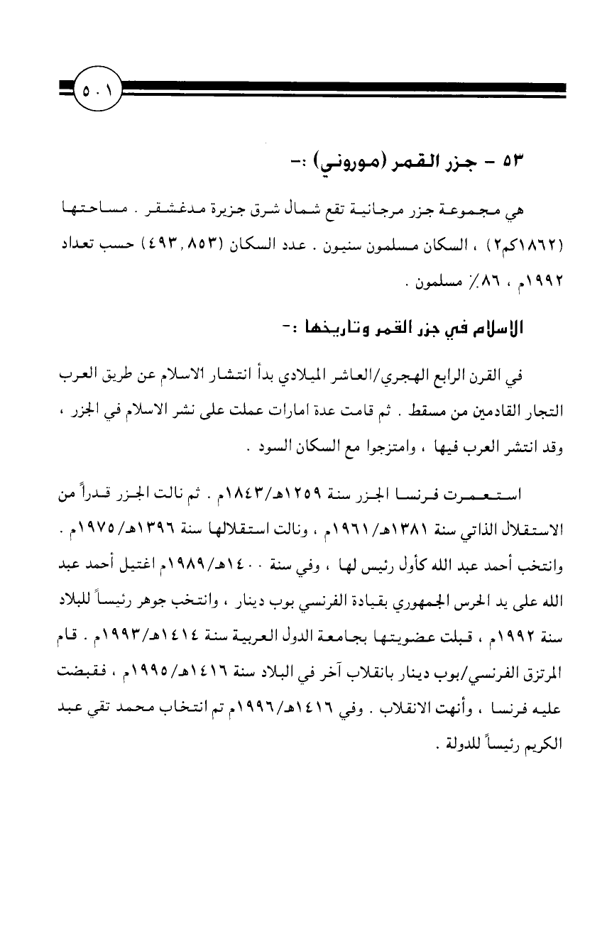 استعمرت فرنسا الجزر سنة 1259 هـ/1843 م. ثم نالت الجزر قدرًا من الاستقلال الذاتي سنة 1381 هـ/1961 م، ونالت استقلالها سنة 1396 هـ/1975 م.