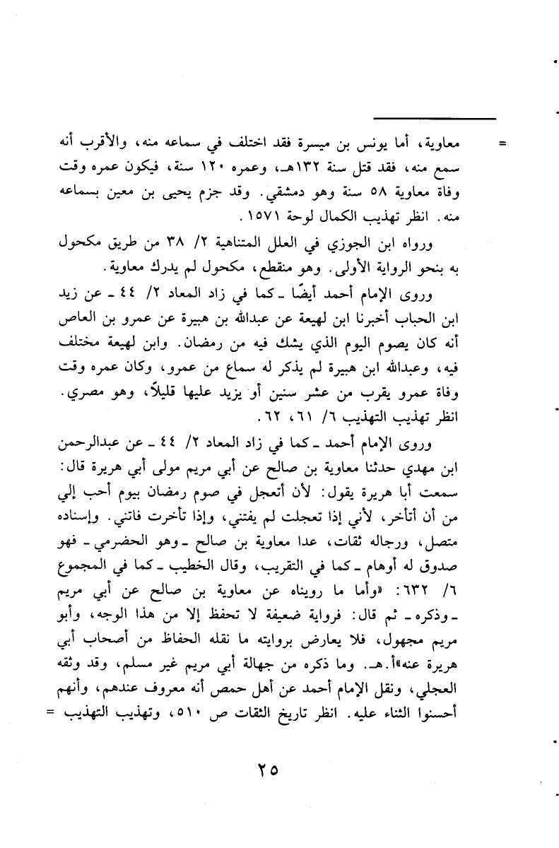 ورواه البيهقي أيضا في الموضع السابق، وفي معرفة السنن 6 / 234 من طريق يزيد بن هارون عن شعبة به ولفظه: أنه سأل عائشة عن الشهر إذا غم. فقالت.. فذكره. ثم قال البيهقي: ''ورواية يزيد بن هارون تدل على أن مذهب عائشة رضى الله عنها في ذلك كمذهب ابن عمر في الصوم إذا غم الشهر دون أن يكون صحوا ''. وإسناد هذه الرواية حسن كسابقه وقال الخطيب: '' أرادت عائشة رضى الله عنها صوم الشك إذا شهد برؤية الهلال عدل، فيجب صومه ولو كان قد شهد بباطل في نفس الأمر، وأرادت بقولها مخالفة من شرط لصوم رمضان شاهدين، والدليل على هذا أن مسروقا روى عنها النهي عن صوم يوم الشك ''. ا. هـ. انظر المجموع 6 / 433.