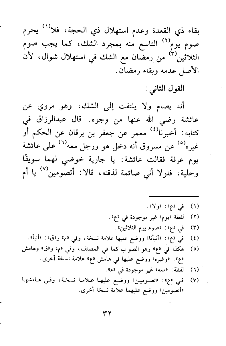 (¬7) في '' ع '': '' تصومين '' ووضع عليها علامة نسخة، وفي هامشها: '' أتصومين '' ووضع عليها علامة نسخة أخرى.