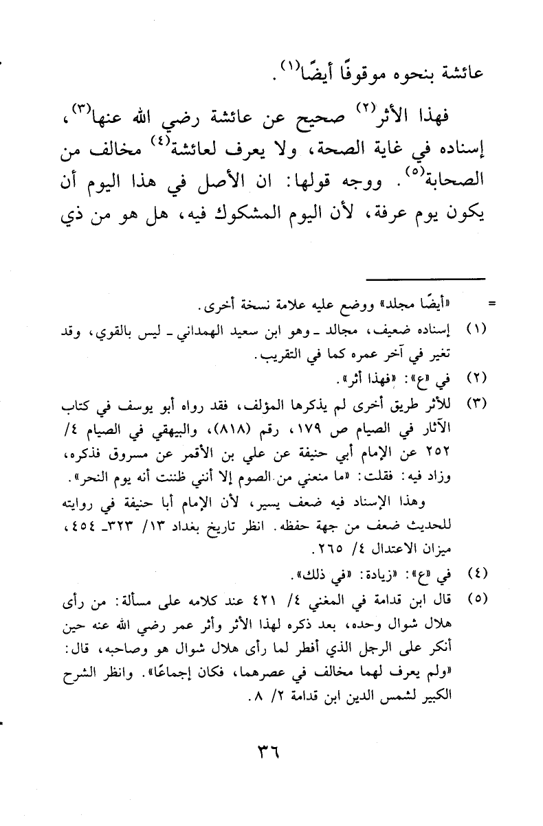(¬5) قال ابن قدامة في المغني 4 / 421 عند كلامه على مسألة: من رأى هلال شوال وحده، بعد ذكره لهذا الأثر وأثر عمر رضي الله عنه حين أنكر على الرجل الذي أفطر لما رأى هلال شوال هو وصاحبه، قال: '' ولم يعرف لهما مخالف في عصرهما، فكان إجماعا ''. وانظر الشرح الكبير لشمس الدين ابن قدامة 2