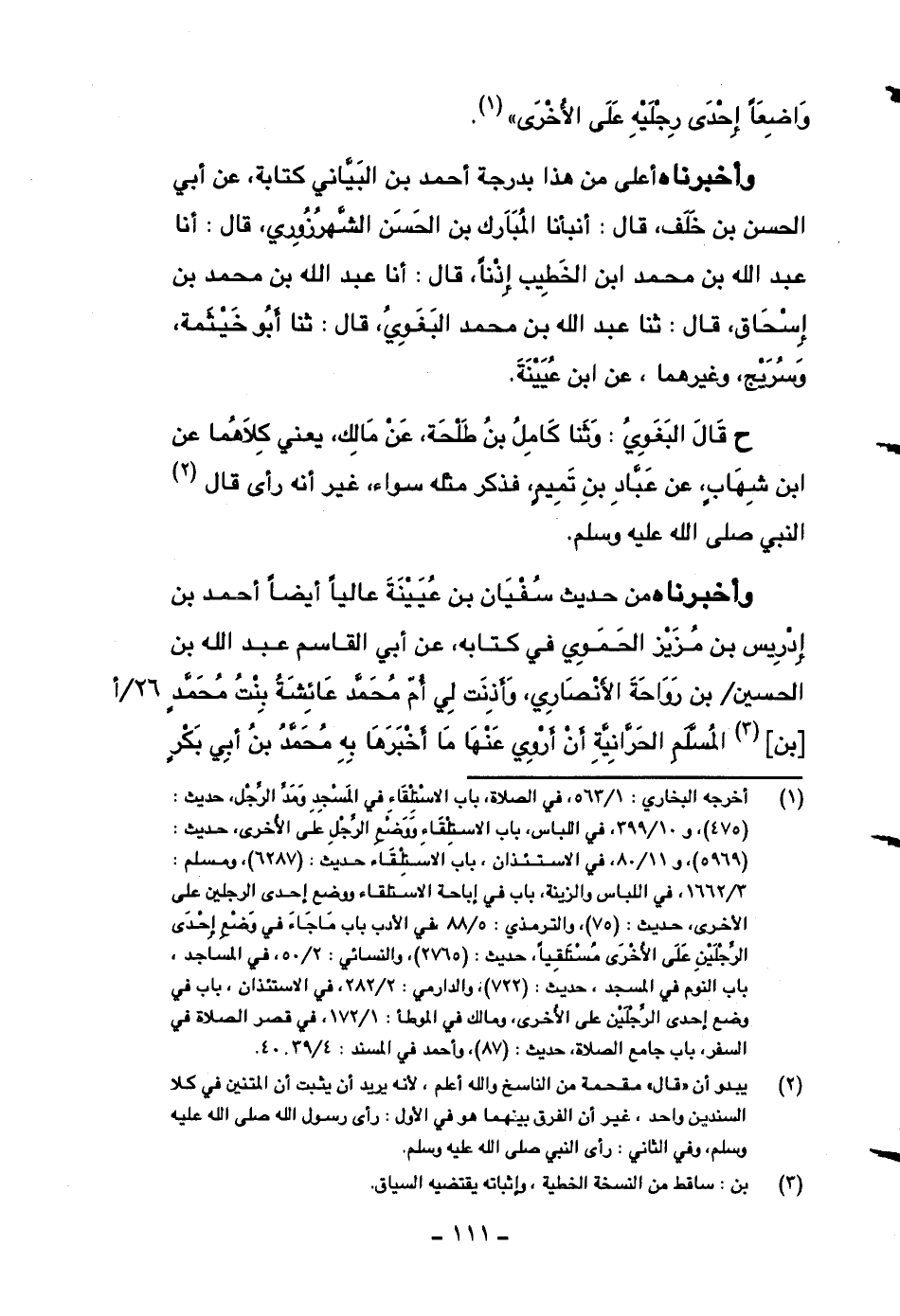 وأخبرناه أعلى من هذا بدرجة أحمد بن البياني كتابة، عن أبي الحسن بن خلف، قال: أنبأنا المبارك بن الحسن الشهرزوري، قال: أنا عبد الله بن محمد ابن الخطيب إذناً، قال: أنا عبد الله بن محمد بن إسحاق، قال: ثنا عبد الله بن محمد البغوي، قال: ثنا أبو خيثمة، وسريج، وغيرهما، عن ابن عيينة.