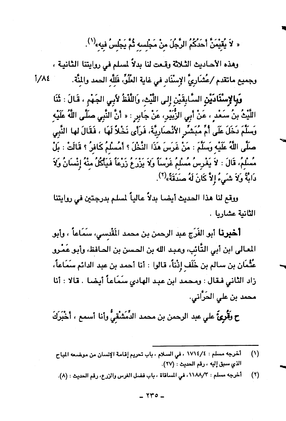 ووقع لنا هذا الحديث أيضاً بدلاً عالياً لمسلم بدرجتين في روايتنا الثانية عشارياً.