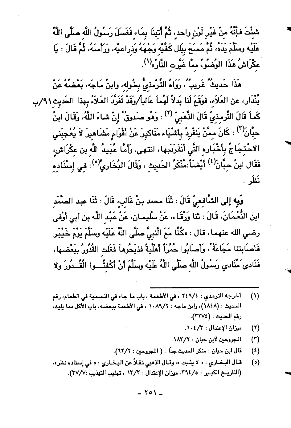 هذا حديثٌ غريبٌ، رواه الترمذي بطوله، وابن ماجه، بعضه عن بندار، عن العلاء، فوقع لنا بدلاً لهما عالياً وقد تفرد العلاء بهذا الحديث كما قال الترمذي قال الذهبي: وهو صدوق إن شاء الله، وقال ابن حبان: كان ممن ينفرد بأشياء مناكير عن أقوامٍ مشاهير لا يعجبني الاحتجاج بأخباره التي أنفرد بها، انتهى. وأما عبيد الله بن عكراش، فقال ابن حبان أيضاً: منكر الحديث، وقال البخاري: في إسناده نظر.