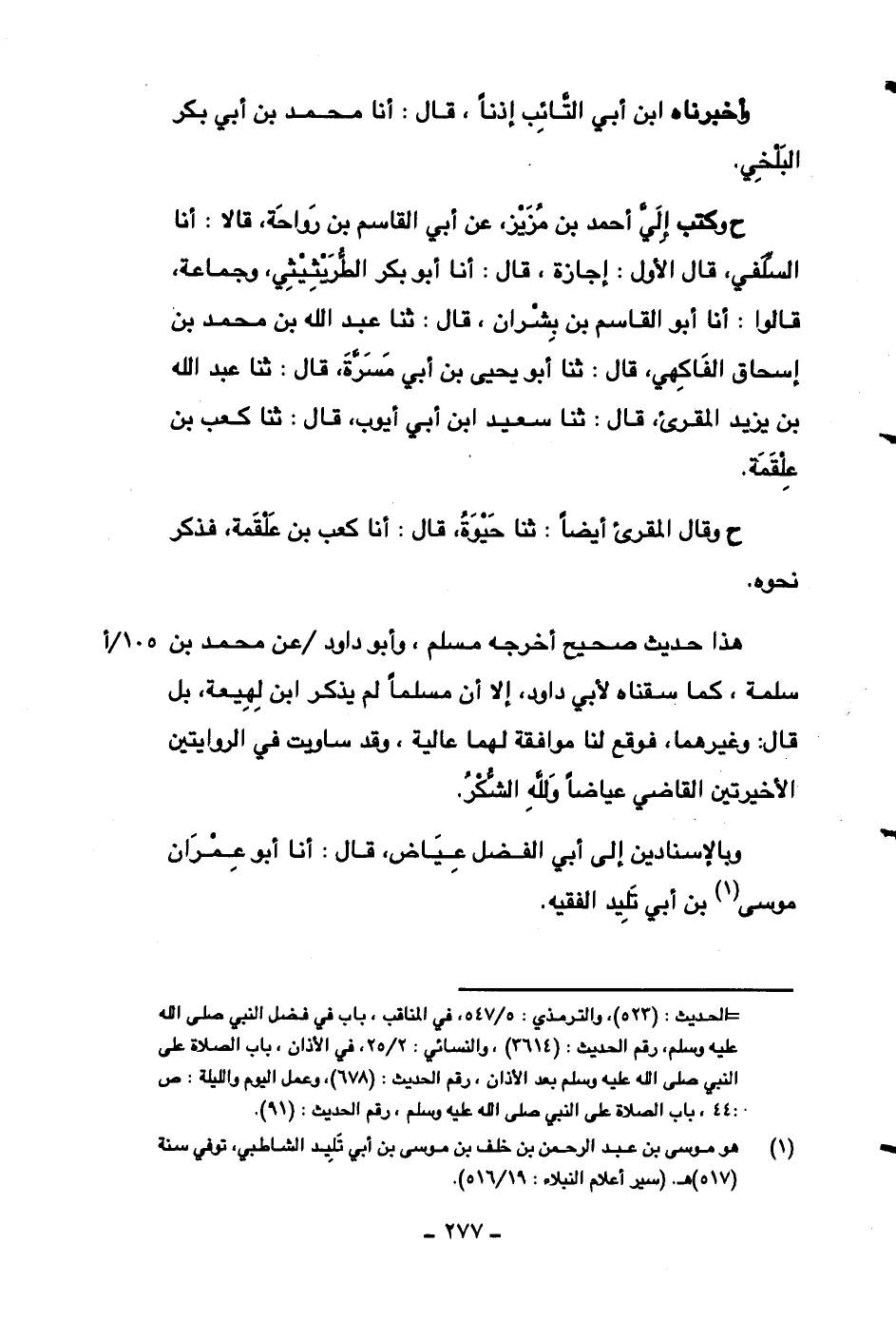 وبالإسنادين إلى أبي الفضل عياض، قال: أنا أبو عمران موسى بن أبي تليد الفقيه.