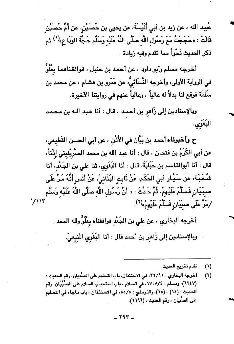 أخرجه مسلم وأبو داود، عن أحمد بن حنبل، فوافقناهما بعلو في الرواية الأولى، وأخرجه النسائي، عن عمرو بن هشام، عن محمد بن سلمة فوقع لنا بدلاً له عالياً، وعالياً عنهم في روايتنا الأخيرة.