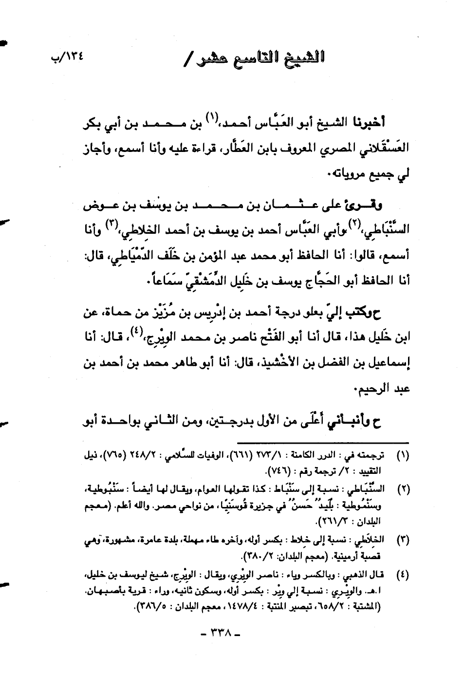 ح وأنبأني أعلى من الأول بدرجتين، ومن الثاني بواحدة أبو