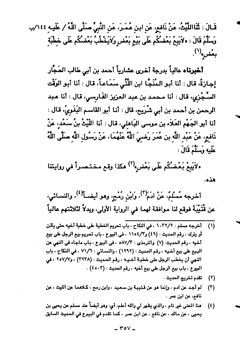 ((لا يبع بعضكم على بعضٍ)) هكذا وقع مختصراً في روايتنا هذه.