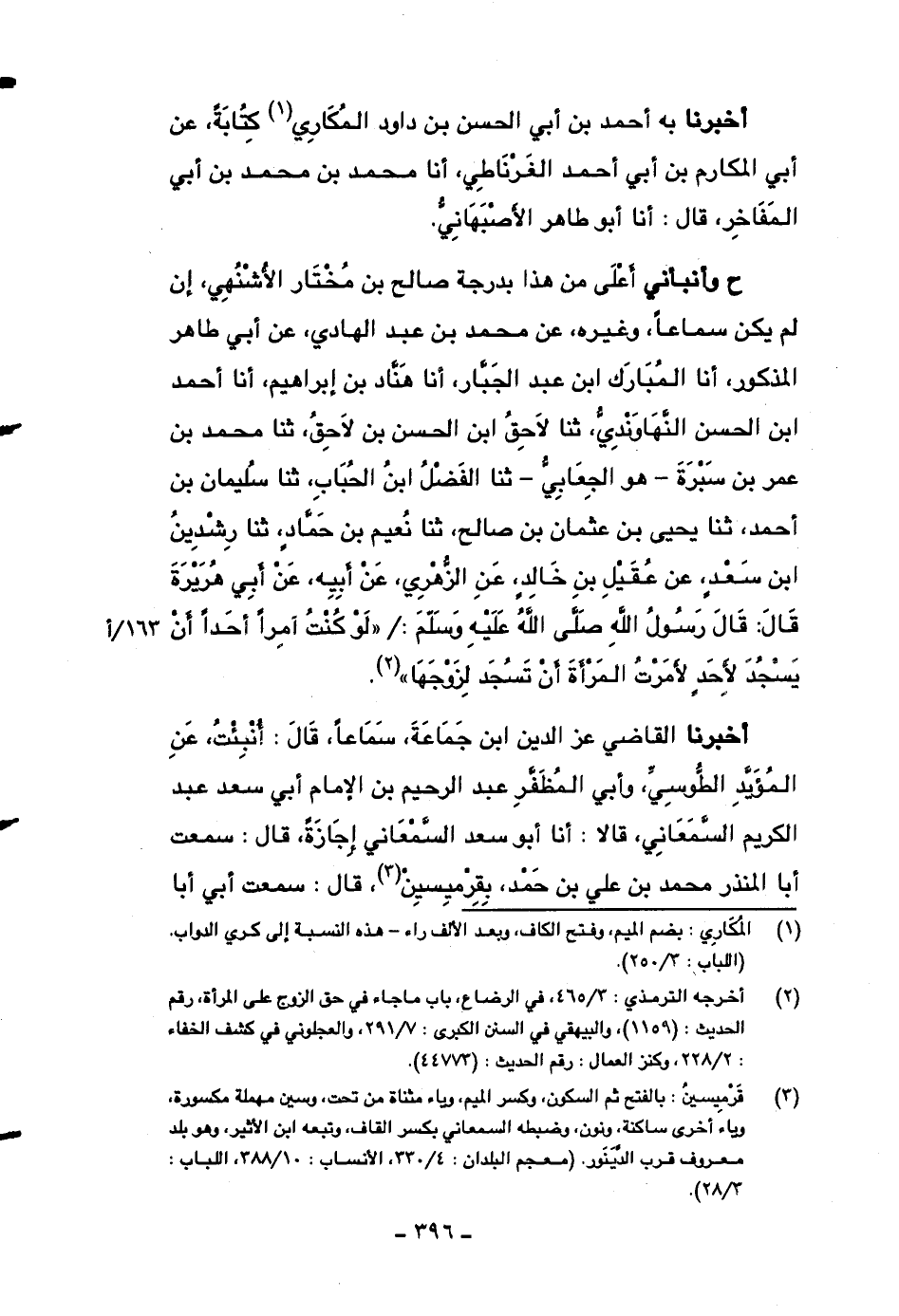 أخبرنا القاضي عز الدين ابن جماعة، سماعاً، قال: أنبئت، عن المؤيد الطوسي، وأبي المظفر عبد الرحيم بن الإمام أبي سعد عبد الكريم السمعاني، قالا: أنا أبو سعد السمعاني إجازةً، قال: سمعت أبا المنذر محمد بن علي بن حمد بقرميسين، قال: سمعت أبي أبا