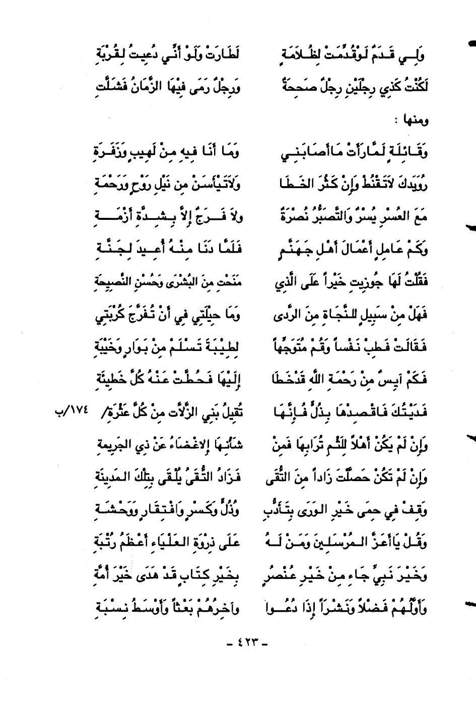 فقالت فطب نفساً وقم متوجهاً ... لطيبة تسلم من بوارٍ وخيبة