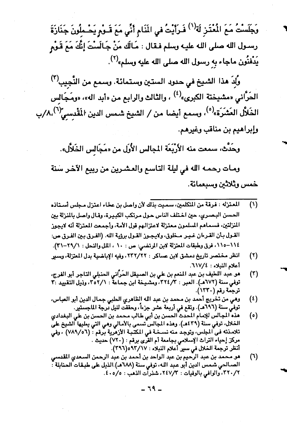 وجلست مع المعتزلة فرأيت في المنام أني مع قومٍ يحملون جنازة رسول الله صلى الله عليه وسلم فقال: مالك من جالست إنك مع قومٍ يدفنون ما جاء به رسول الله صلى الله عليه وسلم)) .