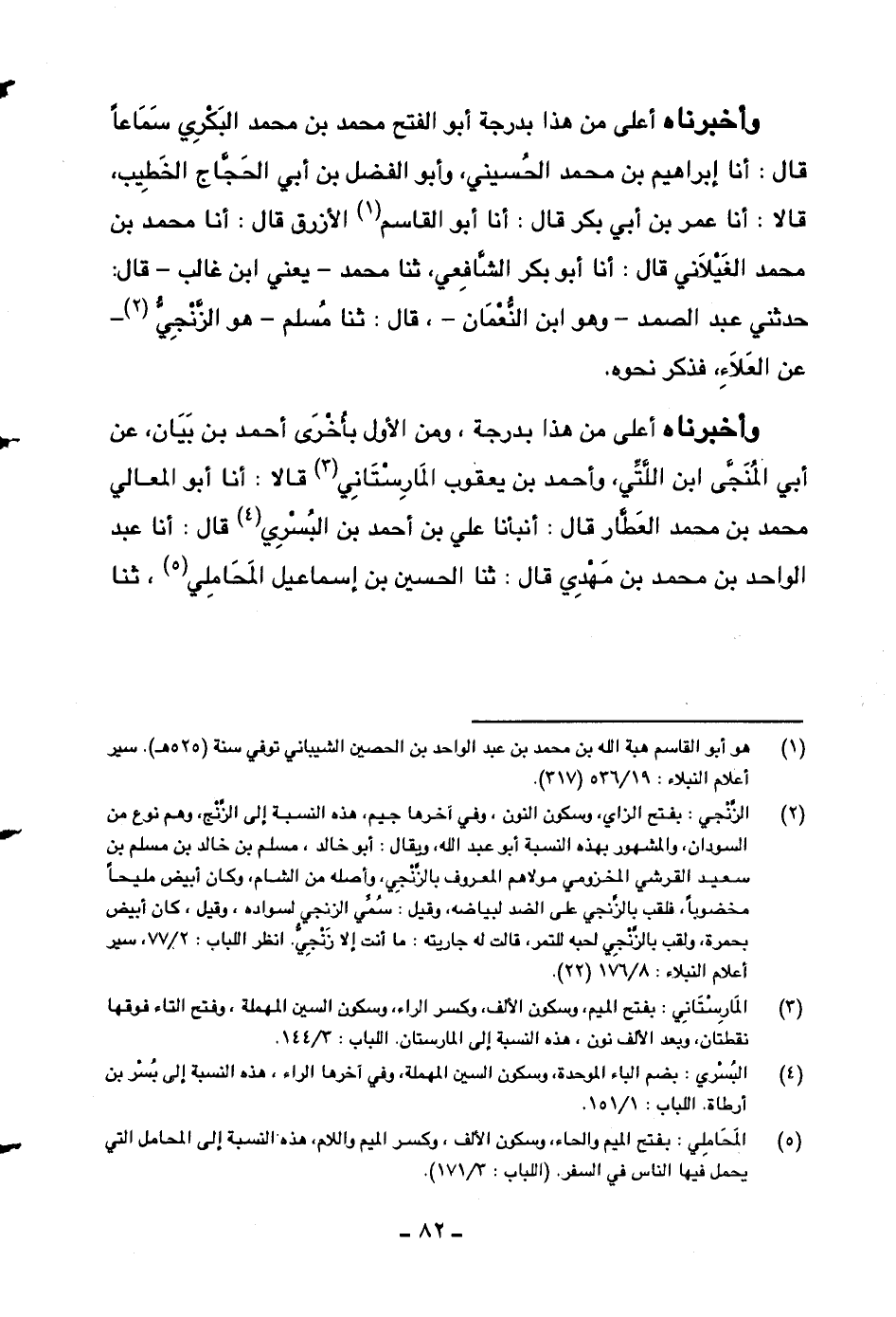 وأخبرناه أعلى من هذا بدرجة، ومن الأول بأخرى أحمد بن بيان، عن أبي المنجى ابن اللتي، وأحمد بن يعقوب المارستاني قالا: أنا أبو المعالي محمد بن محمد العطار قال: أنبأنا علي بن أحمد بن البسري قال: أنا عبد الواحد بن محمد بن مهدي قال: ثنا الحسين بن إسماعيل المحاملي، ثنا