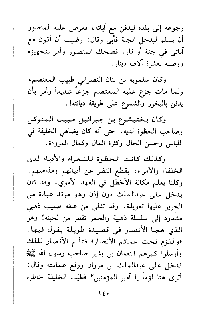 وكذلك كانت الحظوة للشعراء والأدباء لدى الخلفاء والأمراء، بقطع النظر عن أديانهم ومذاهبهم. وكلنا يعلم مكانة الأخطل في العهد الأموي.