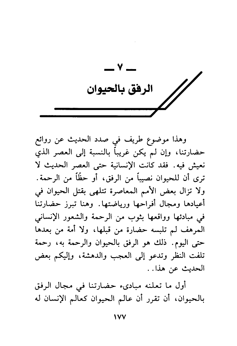 أول ما تعلنه مبادئ حضارتنا في مجال الرفق بالحيوان، أن تقرر أن عالم الحيوان كعالم الإنسان له
