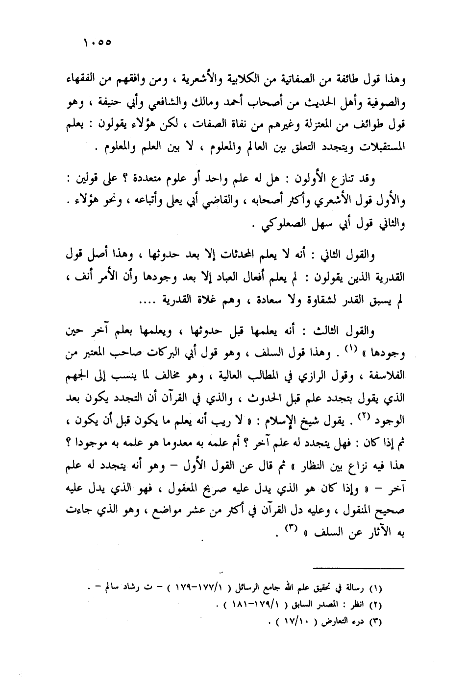 (1) رسالة في تحقيق علم الله جامع الرسائل (1/177-179) - ت رشاد سالم-