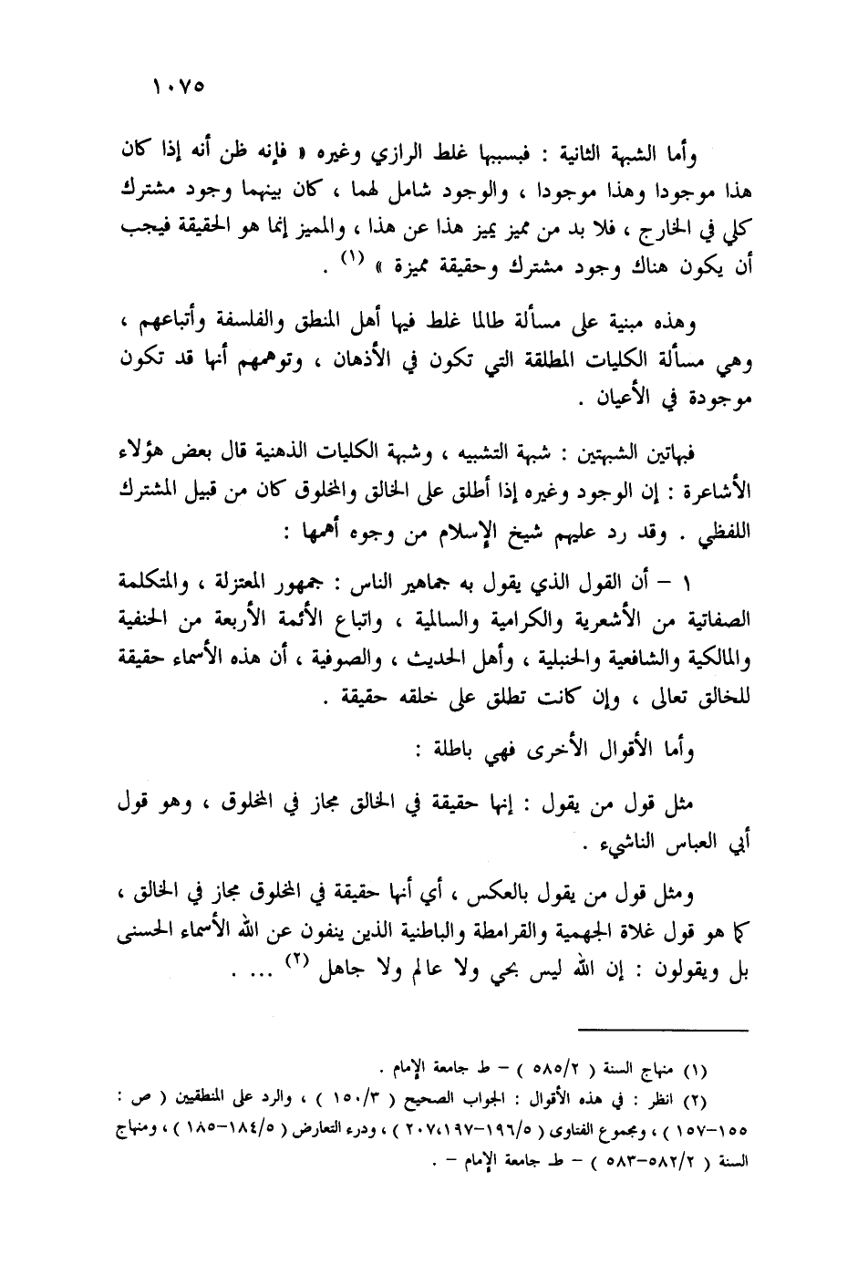 (¬2) انظر: في هذه الأقوال: الجواب الصحيح (3/150) ، والرد على المنطقيين (ص: 155-157) ، ومجموع الفتاوى (5/196-197، 207) ، ودرء التعارض (5/184-185) ، ومنهاج السنة (2/582-583) - ط جامعة الإمام -.