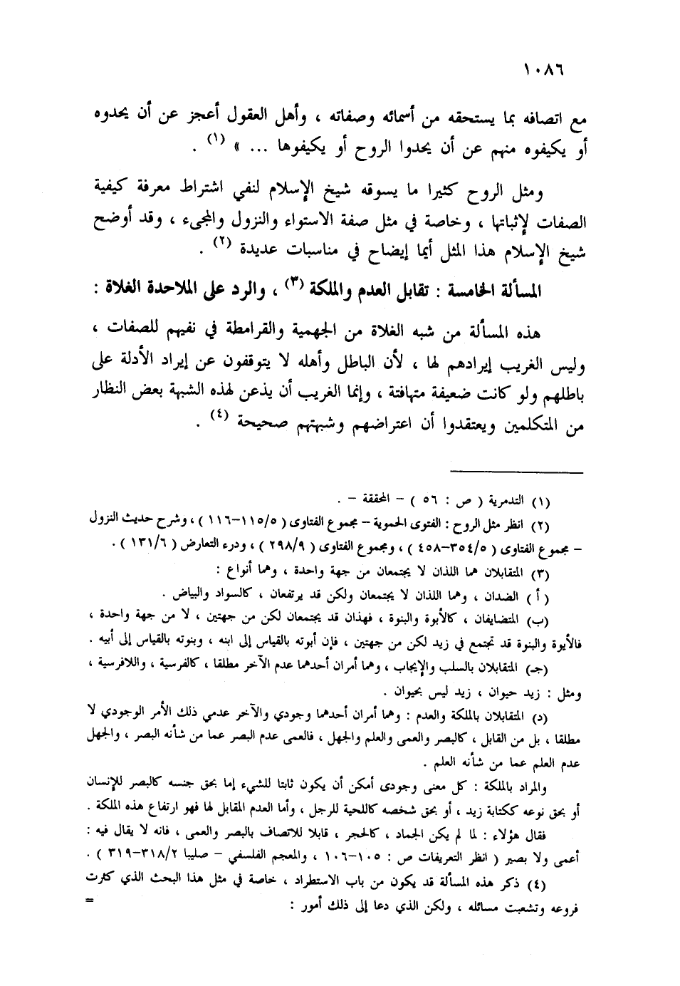 (¬2) انظر مثل الروح: الفتوى الحموية - مجموع الفتاوى (5/115-116) ، وشرح حديث النزول - مجموع الفتاوى (5/354-458) ، ومجموع الفتاوى (9/298) ، ودرء التعارض (6/131) .