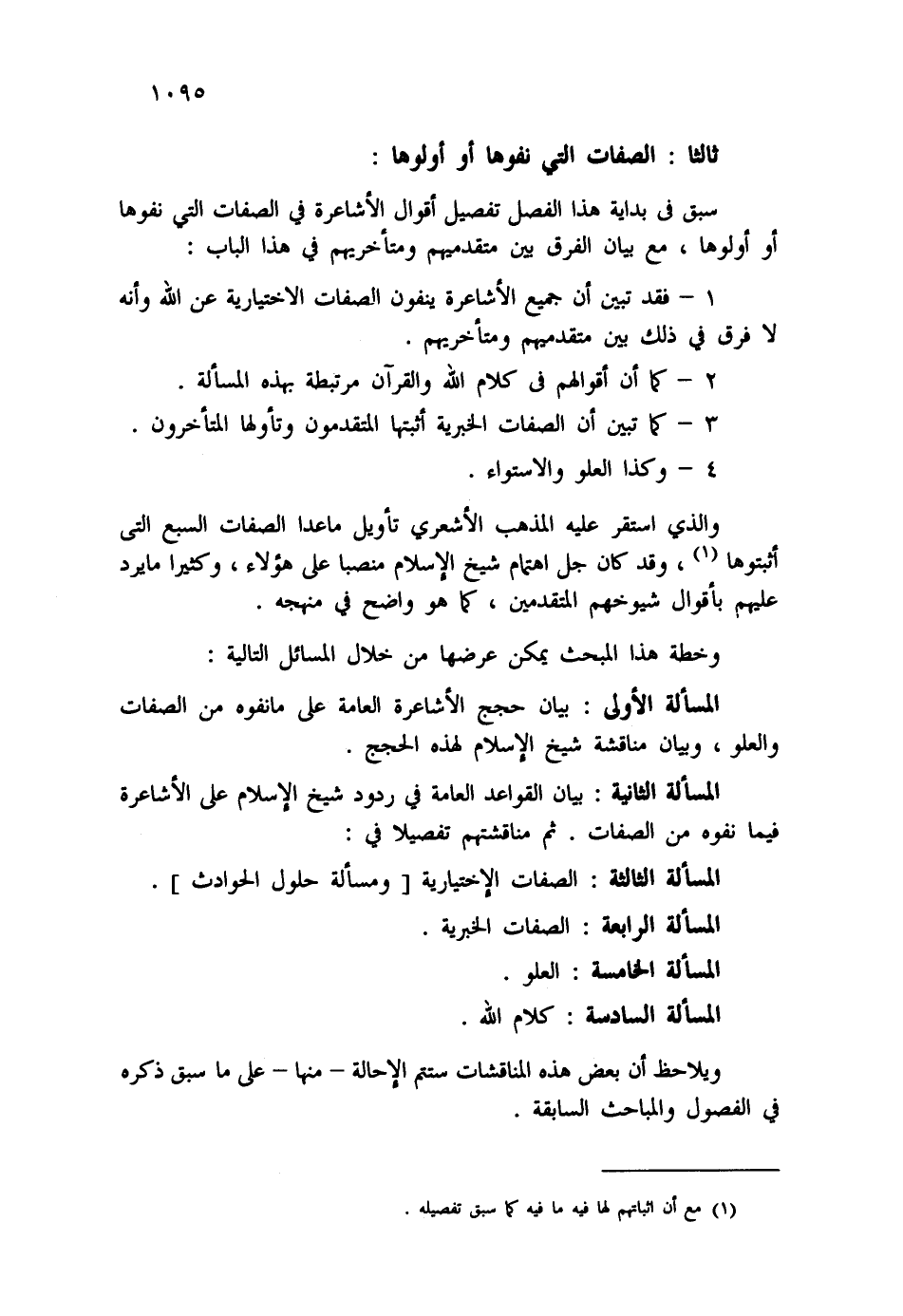 المسألة الثانية: بيان القواعد العامة في ردود شيخ الإسلام على الأشاعرة فيما نفوه من الصفات. ثم مناقشتهم تفصيلا في: