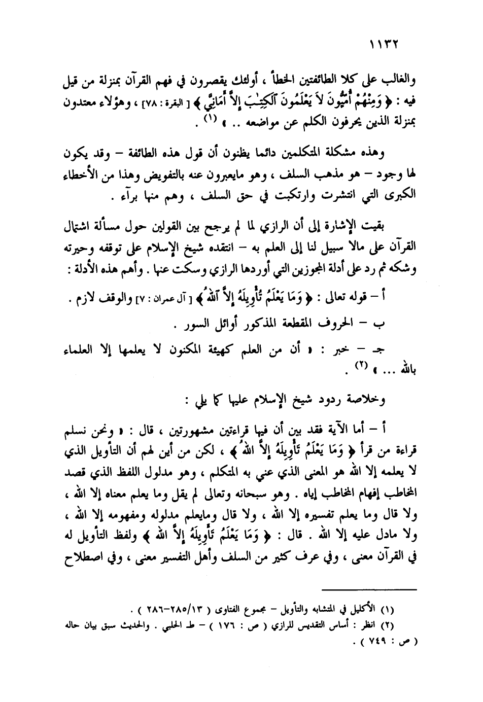 (¬1) الأكليل في المتشابه والتأويل - مجموع الفتاوى (13/285-286) .
