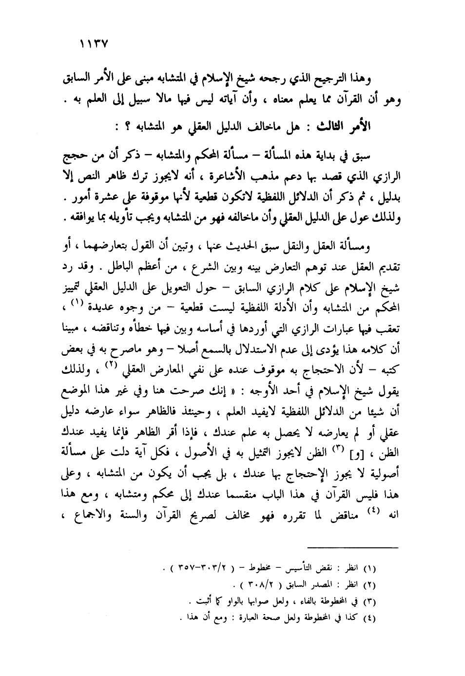 الأمر الثالث: هل ما خالف الدليل العقلي هو المتشابة؟: